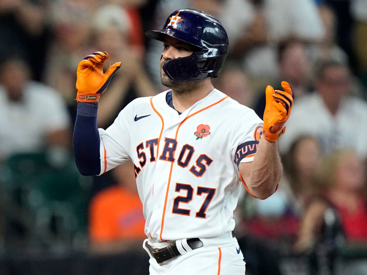 Houston, helped by an error by Marwin Gonzalez, pulls away with three runs in the seventh inning.