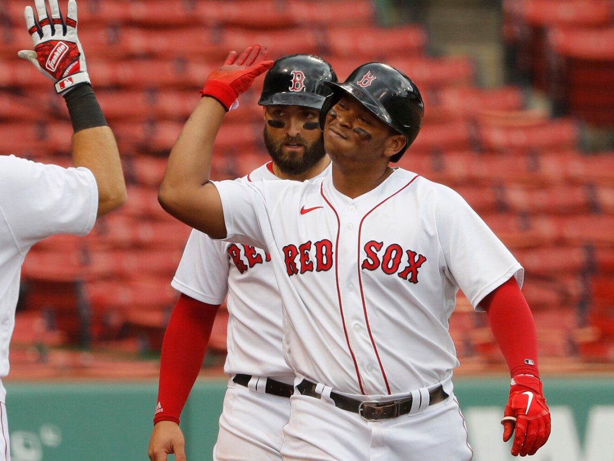 Xander Bogaerts, J.D. Martinez and Rafael Devers connect in an 8-5 victory over the Orioles.