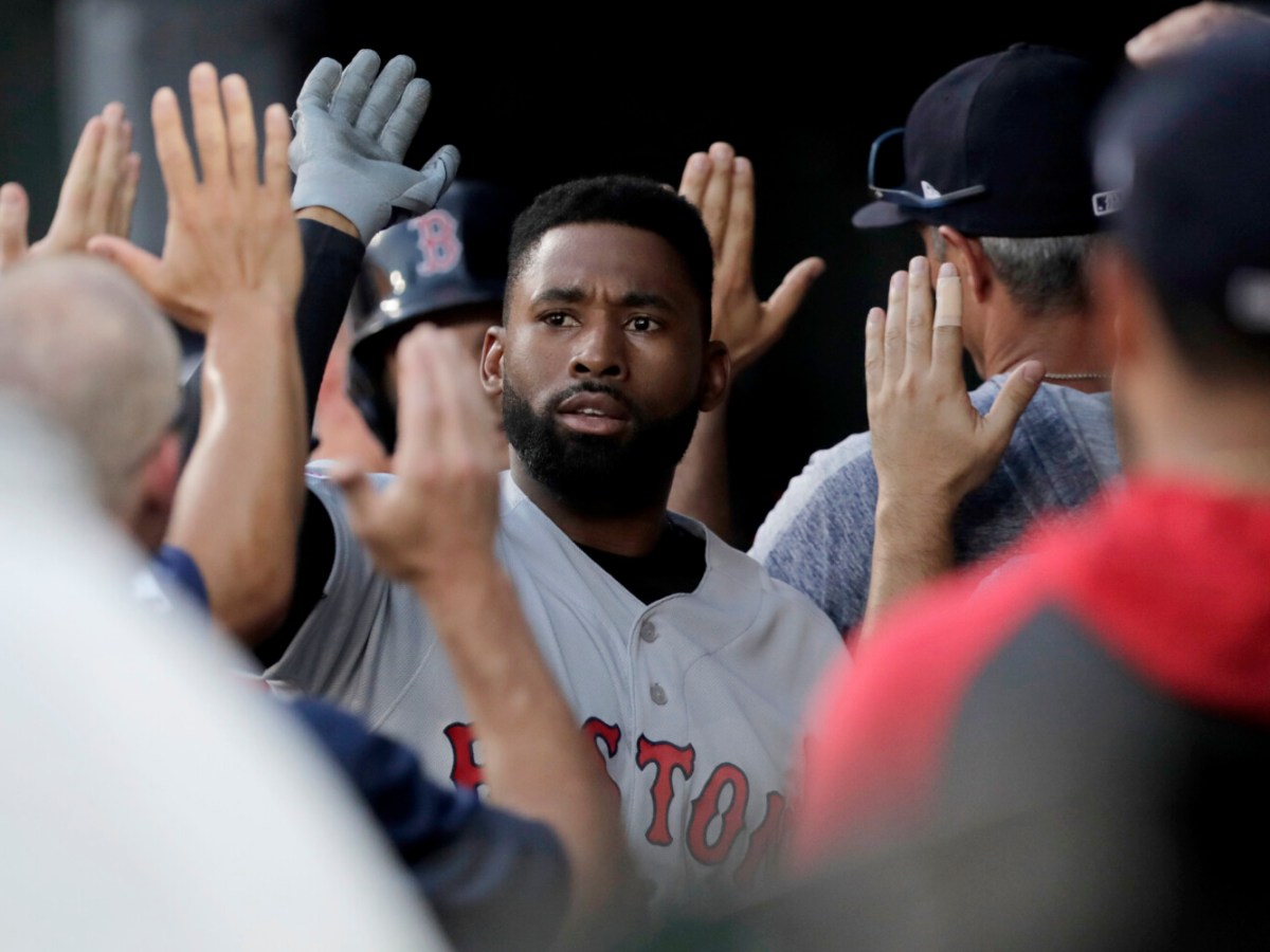 Jackie Bradley hits two three-run homers, and Boston again gives Rick Porcello an abundance of offensive support.