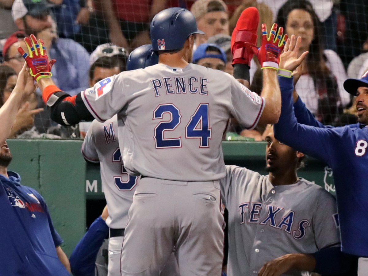 Texas’ Hunter Pence hits an stand-up inside-the-park homer as Boston loses its third straight.