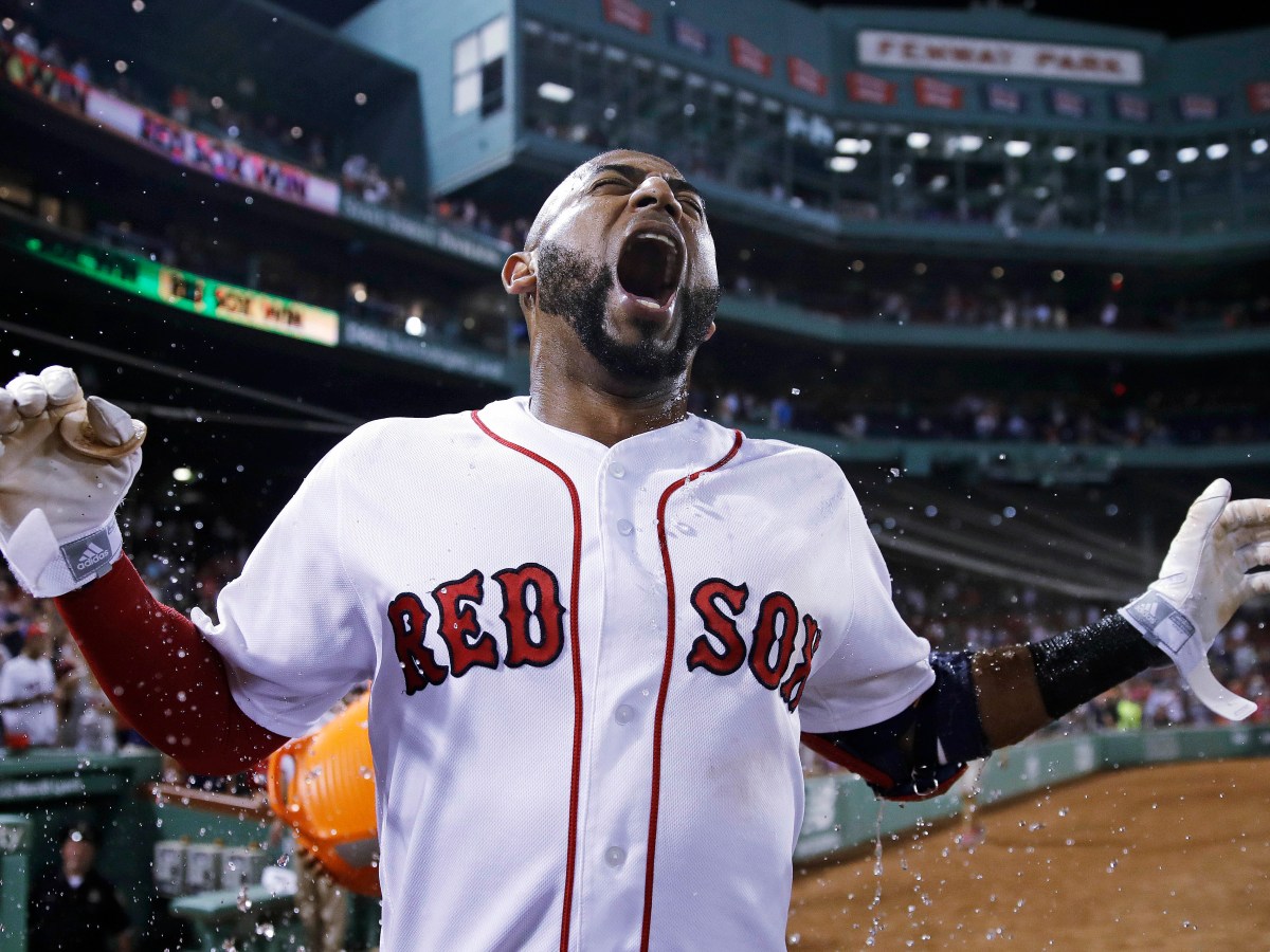 Boston scores 11 runs in the seventh inning to earn a two-game series sweep, but David Price is forced out of the game after taking a line drive off his left wrist.