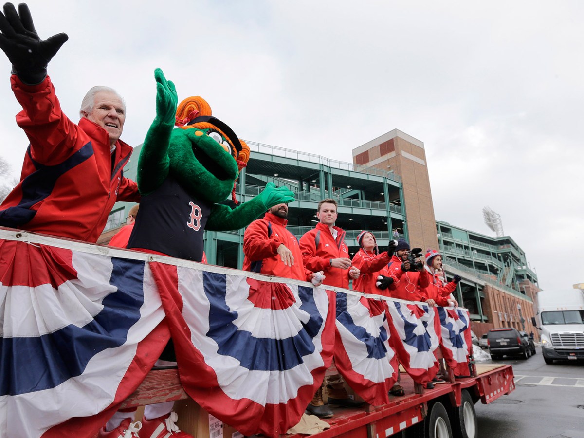 The equipment truck rolls out of Fenway, bound for Fort Myers, Florida.