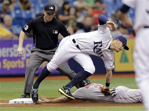 Matt Joyce gets the RBI off Boston’s Burke Badenhop for a four-game split.