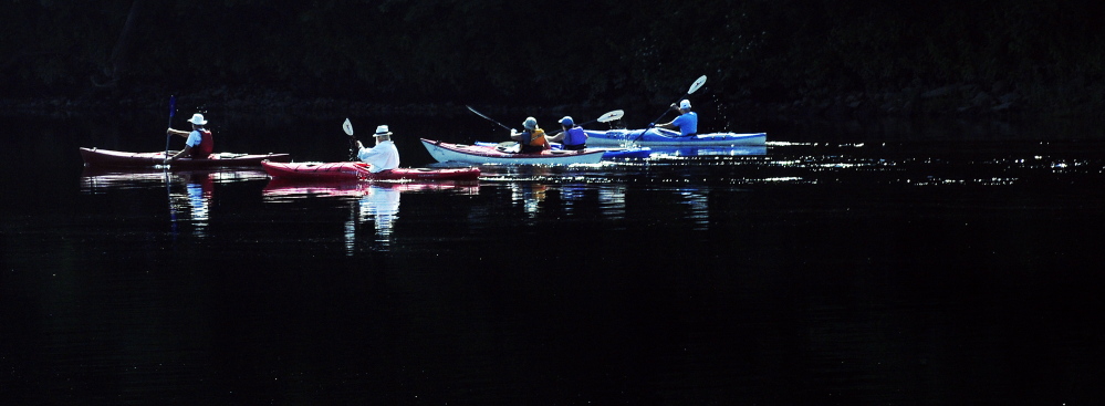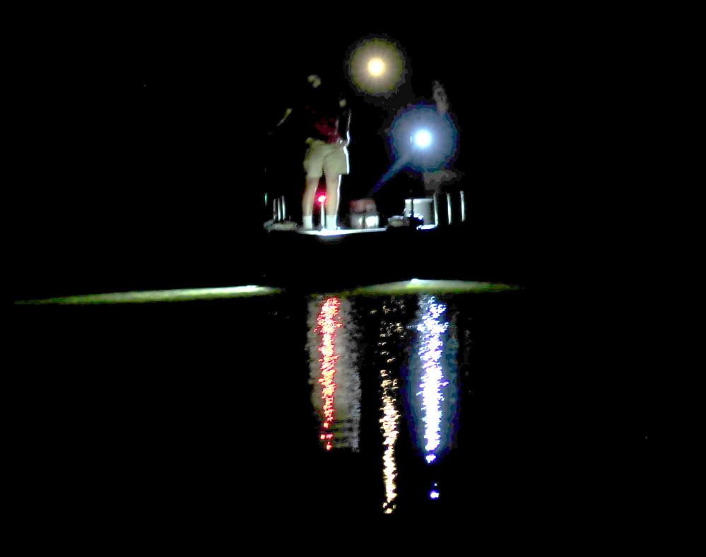 The Belgrade Lakes Conservation Alliance uses underwater lights to find patches of the invasive aquatic plant during nighttime surveys.