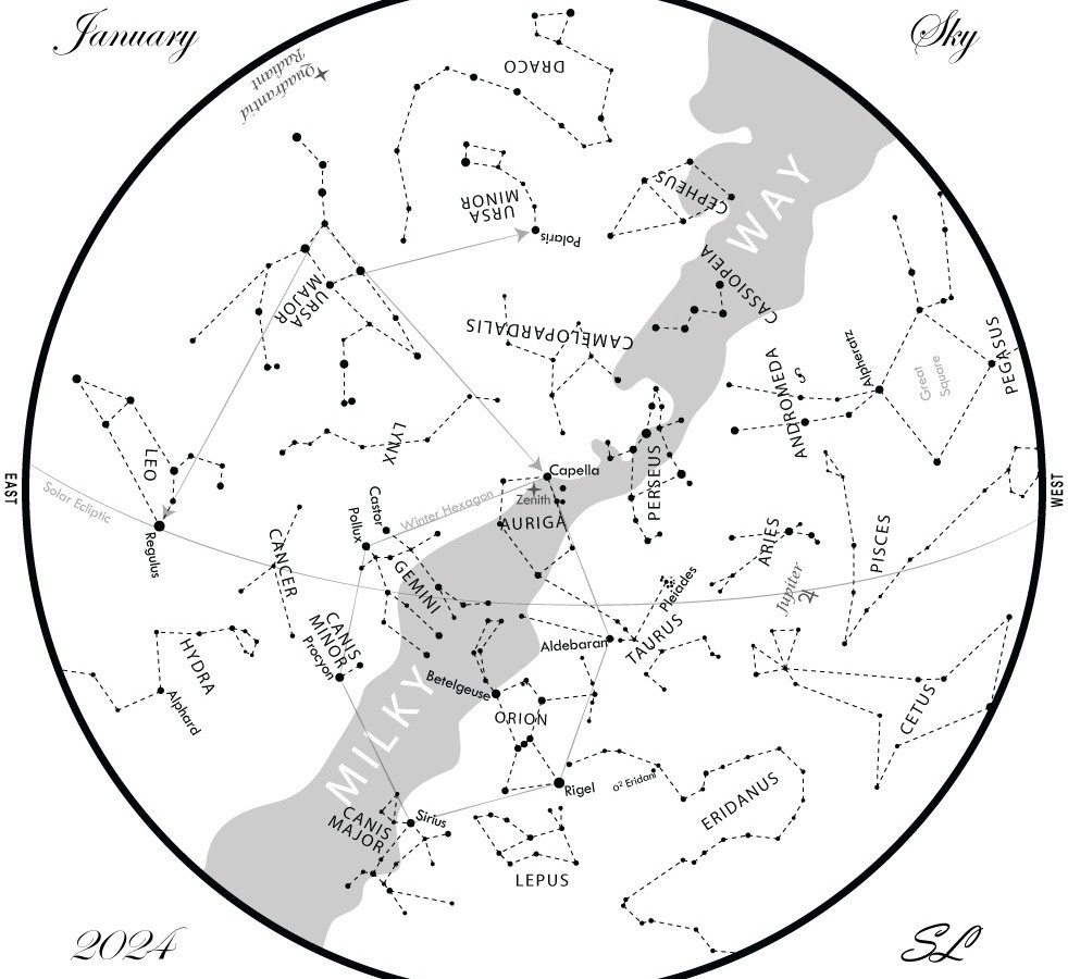 Other highlights include Venus moving into Scorpius, two comets, and the annual Quadrantid meteor shower.