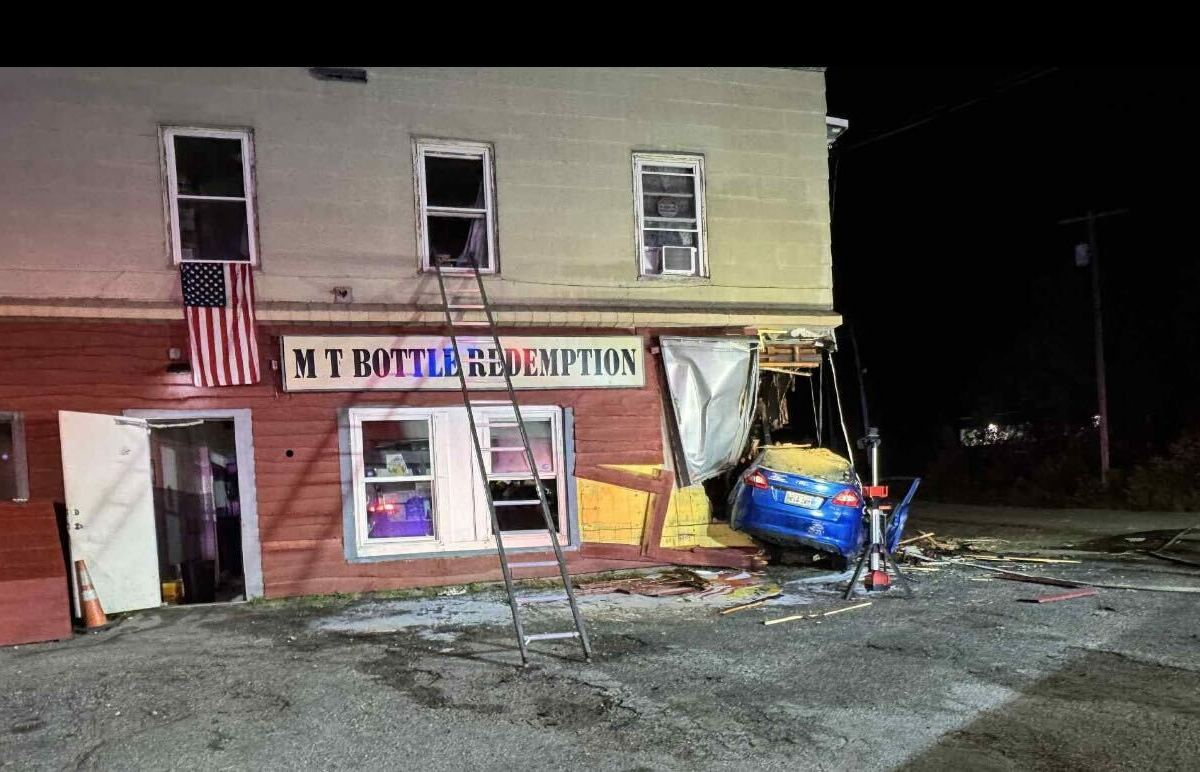 Lewiston police said the man crashed into M.T. Bottle Redemption on Lisbon Street after leading them on a brief high-speed chase early Friday.