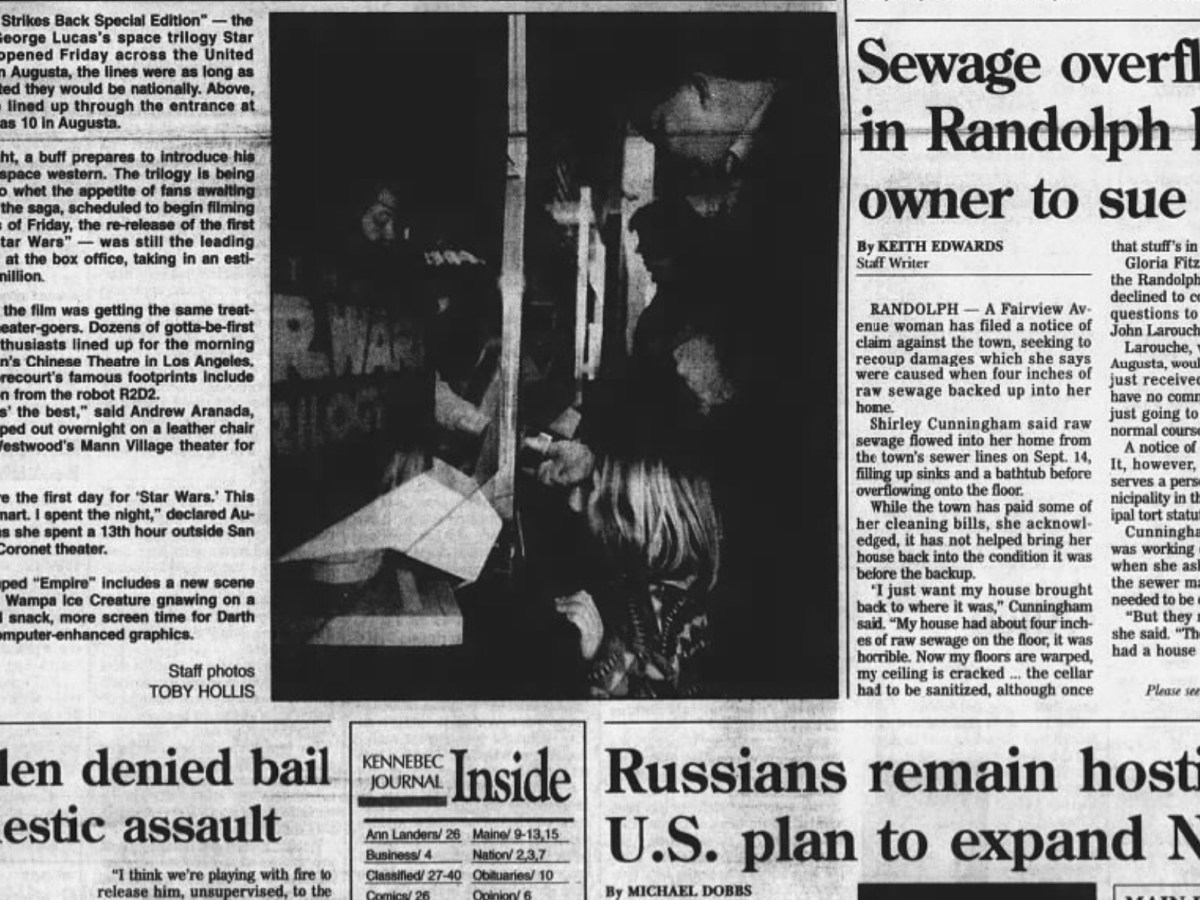 Feb. 22, 1997: Randolph homeowner to sue town after sewage overflows in her home, former Democratic aide Kenneth Allen denied bail in domestic assault incident, and the empire strikes gold in Augusta