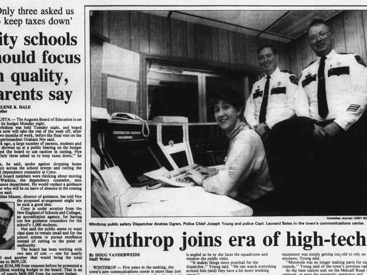 Feb. 24, 1994: ‘Augusta schools should focus on quality’ says parents, Winthrop’s new communications center opens and it’s ‘high-tech’, and Maine Public Television Plus gets added to cable lineups in the Augusta area