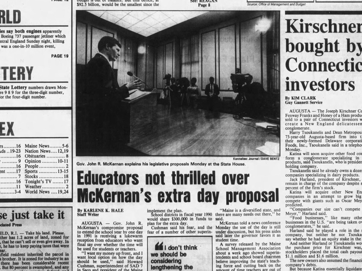 Jan. 10, 1989: Two Conn. investors hope to create delicatessen products conglomerate in central Maine, educators not thrilled with Gov. McKernan’s extra day proposal, and a man in R.I. wants you to take his land