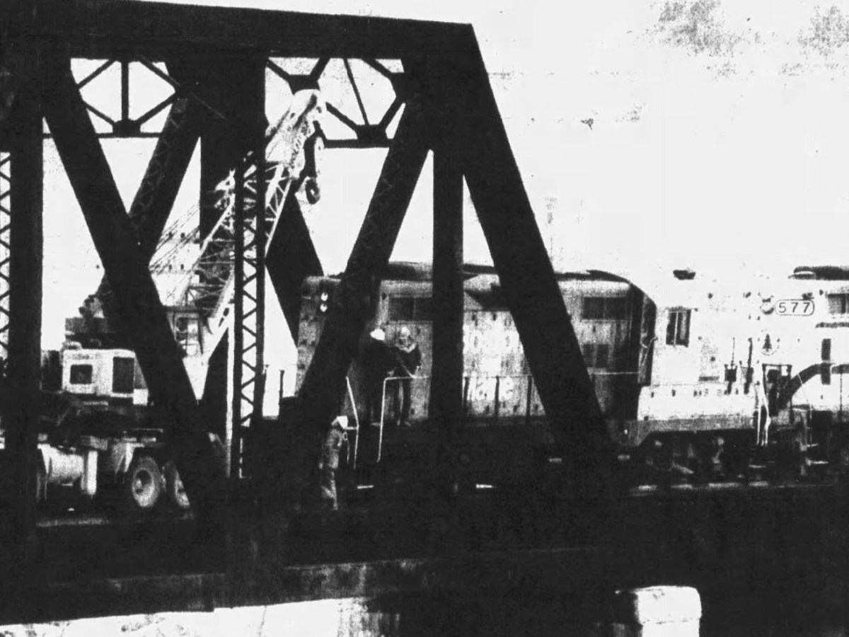 Jan. 15, 1985: Derailment of 80-car freight train on Waterville-Winslow bridge snarls traffic for miles for commuters, and PUC signs 5-week delay on Seabrook nuclear power plant