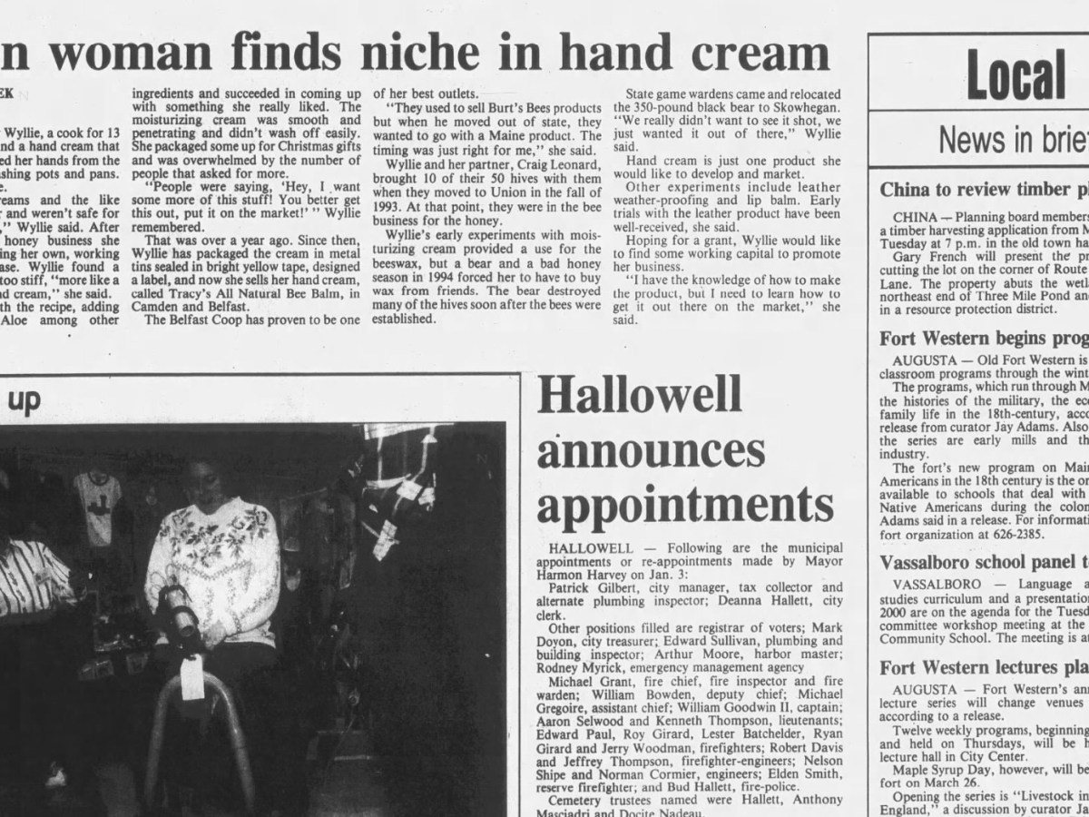 Jan. 16, 1995: Union woman finds her niche in making her own hand cream, city of Hallowell announces municipal appointments, and local Salvation Army helps family in Chile