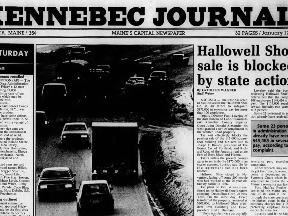 Jan. 17, 1987: Maine acts to block sale of Hallowell Shoe Co. in effort to safeguard severance pay for over 100 workers, some 72,000 cans of green beans recalled nationwide, and get ready for another snow storm tomorrow
