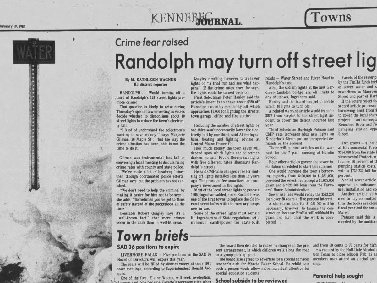 Jan. 11, 2000: Skowhegan Area Middle School starting to show it’s age with roof leaks, cracks, Waterville city planners delay action on new 82-room Hampton Inn off Kennedy Memorial Drive, and Gov. King unveils $280 million state budget