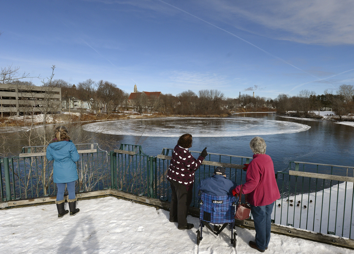 Video: Spinning in the Presumpscot, this alien-looking ice disk has Westbrook all abuzz
